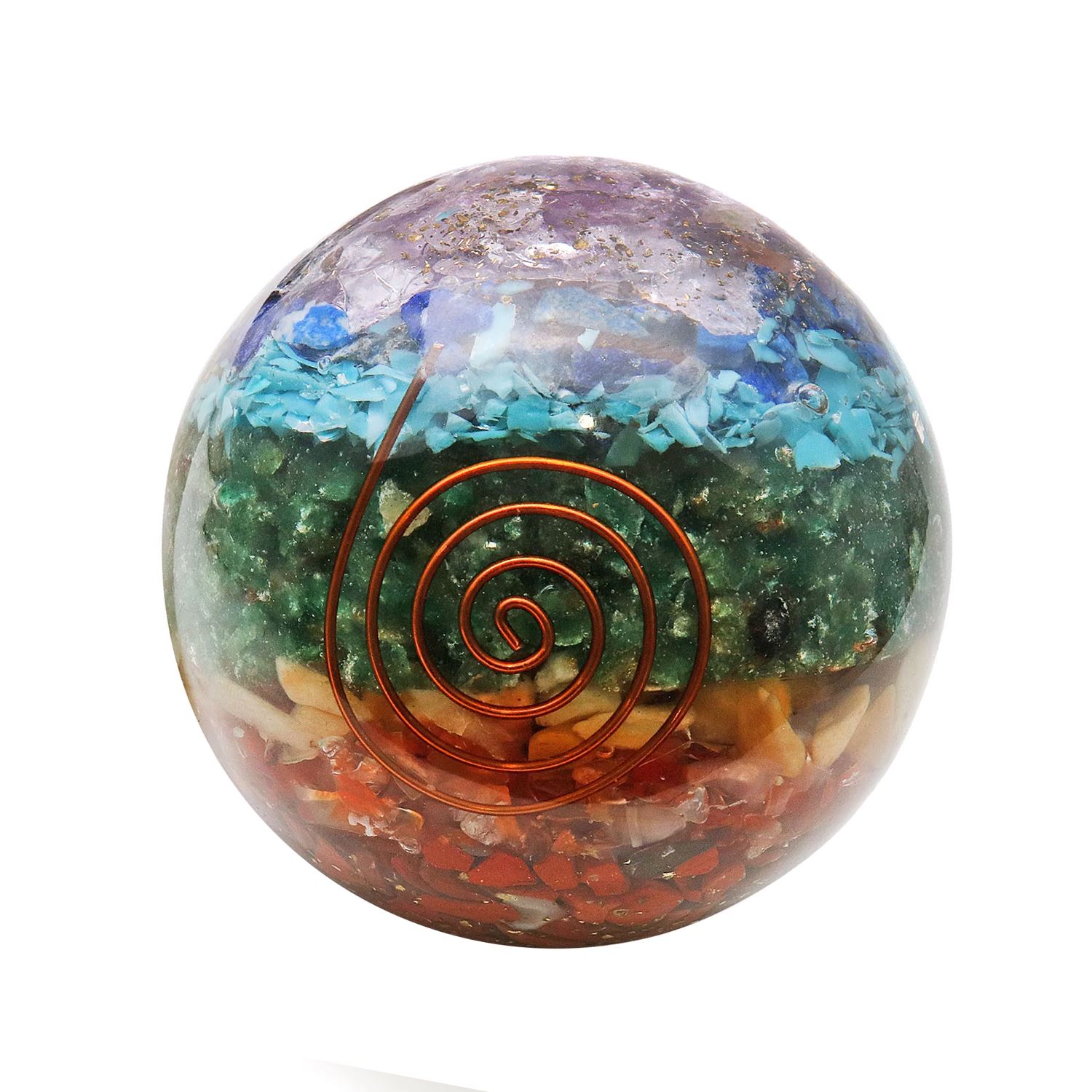 7 Chakra Orgone Ball helps to filter and balance energy fields in our environment and can aid in strengthening your energy body by converting low-frequency energy into a higher frequency that is more beneficial for life forms including yourself, pets, and plants.