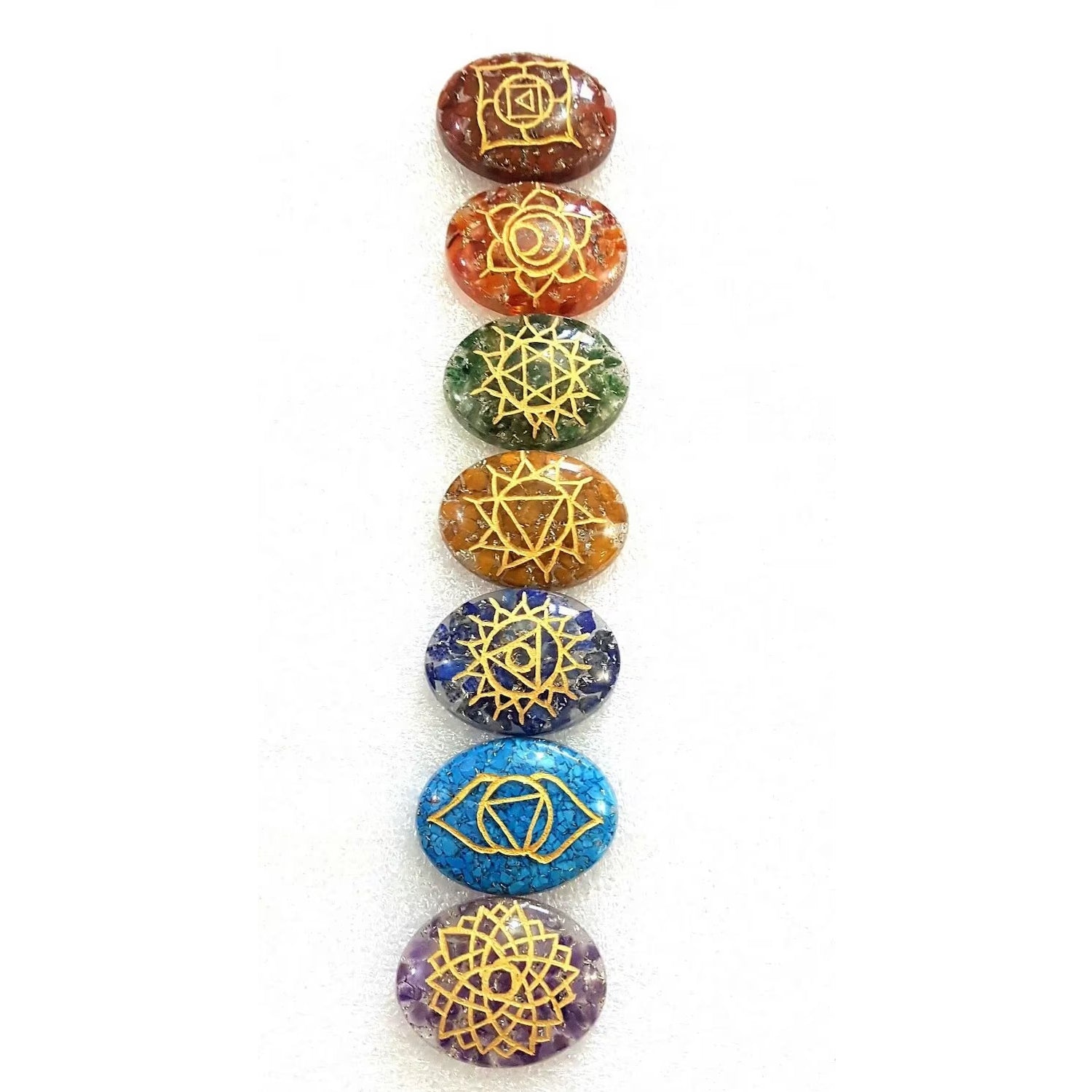 7 Chakras Orgone Chakra Set with Engraved Symbol Oval Shape