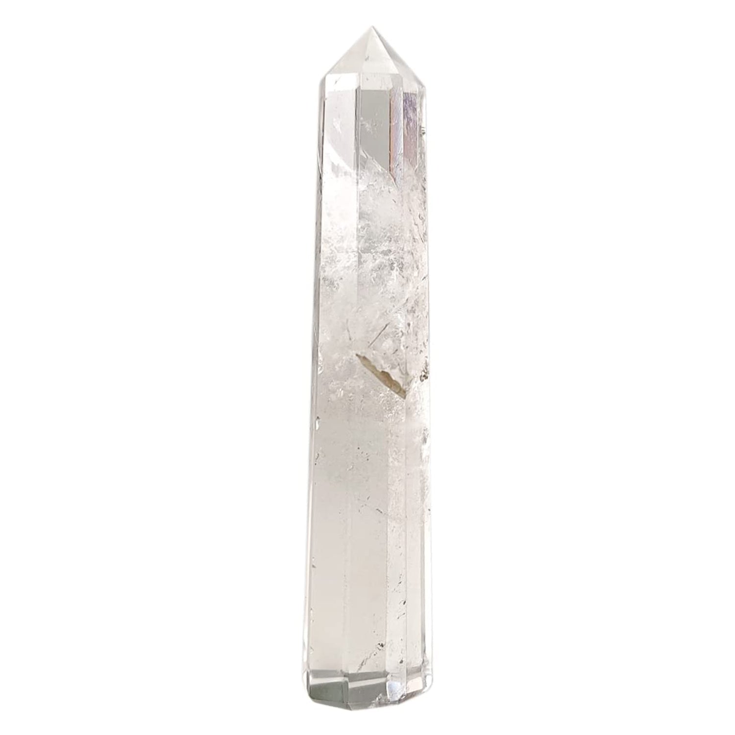 A Clear Quartz Crystal Wand is a tool often used in crystal healing, meditation, and ritual practices. It is believed to have grounding and protective properties and is thought to help with emotional balance and stability.