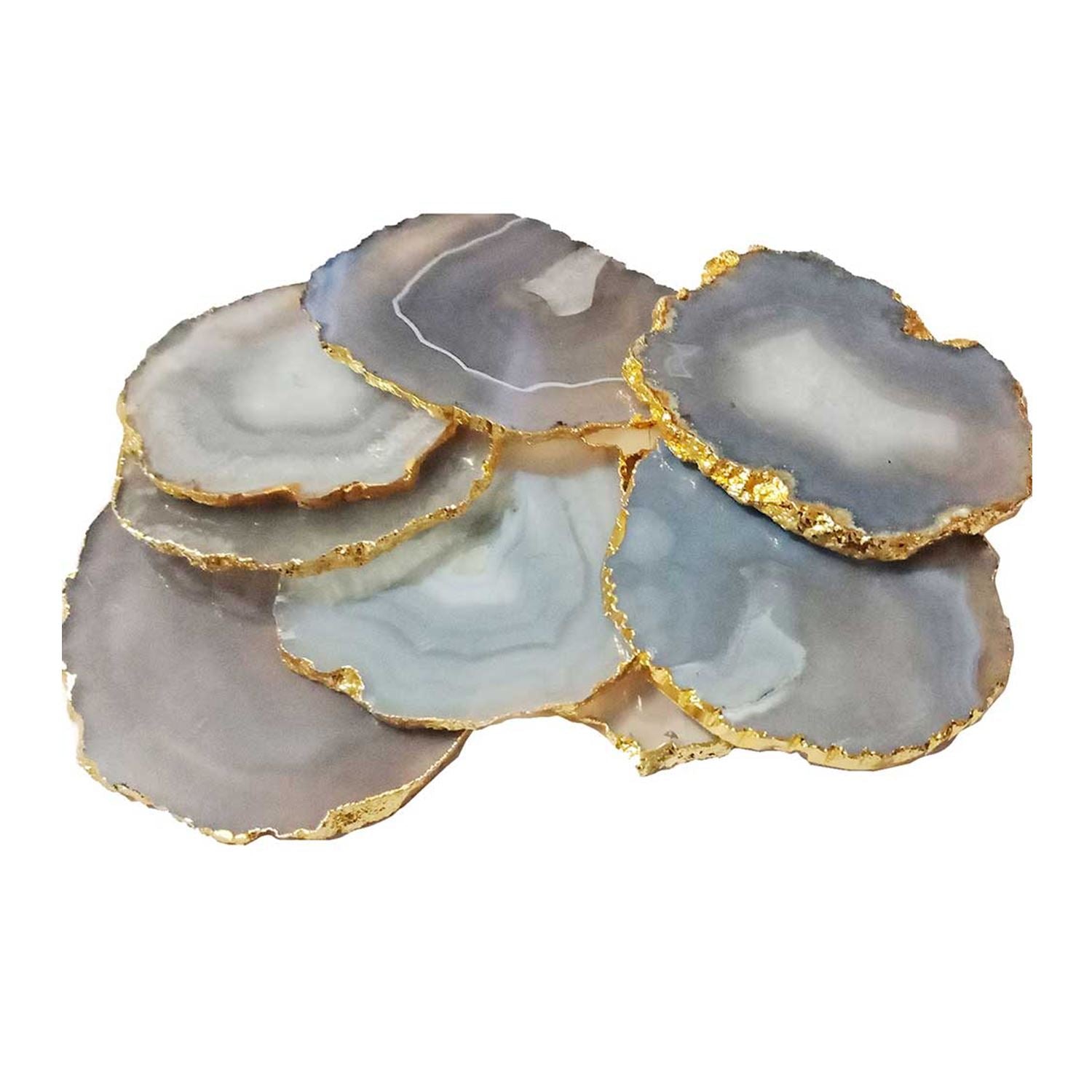 Grey Agate Gemstone Coasters Set is often used in homes, cafes, bars, and restaurants to protect furniture and maintain cleanliness. Coasters also serve as decorative items and can be found in various shapes, sizes, designs, and colors.