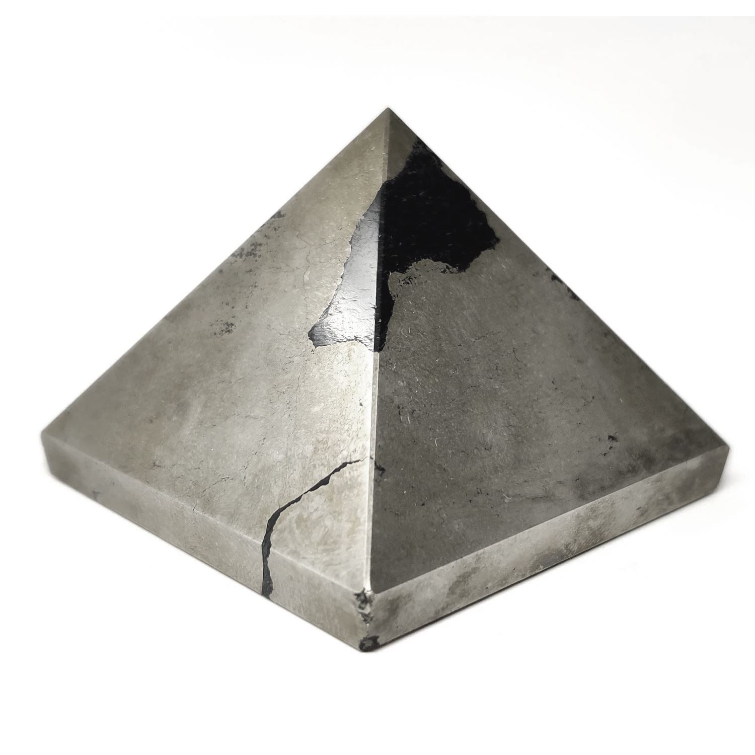 A Pyrite Crystal Pyramid is a pyramid-shaped object made out of the mineral Pyrite. Pyrite, also known as "fool's gold," is a shiny, metallic-looking mineral that is often mistaken for gold. Pyrite is typically a brassy yellow color but can also be found in shades of gray, black, or green.
