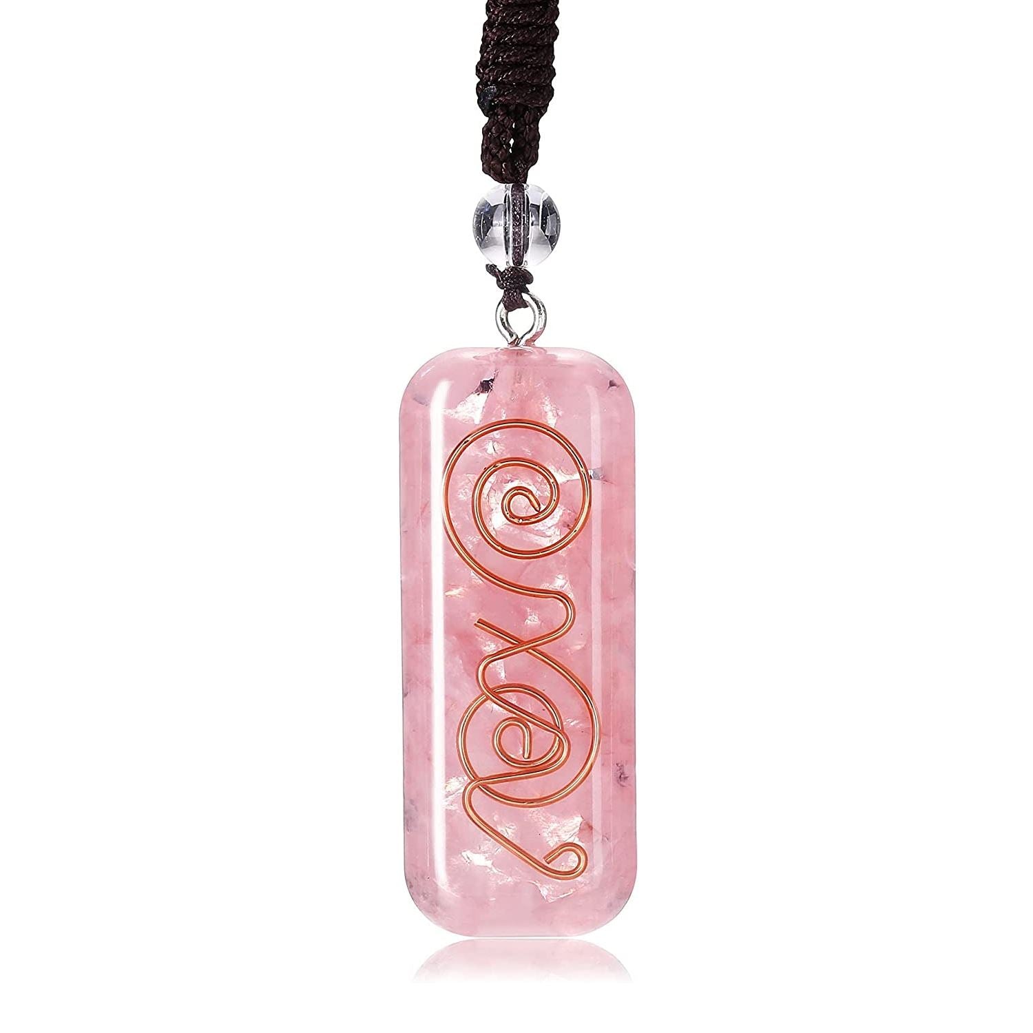 Rose quartz orgone necklaces are powerful spiritual tools that transform Universal Life Form Energy into a powerful positive energy that will benefit each area of your energies; physically, mentally, emotionally, and spiritually. Rose Quartz Orgonite necklace for Love, Trust, and Harmony in the relationship.