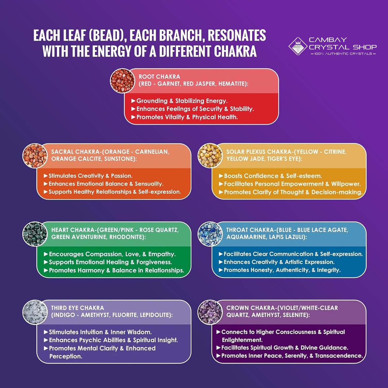 • 100% Original Crystals, each representing a chakra