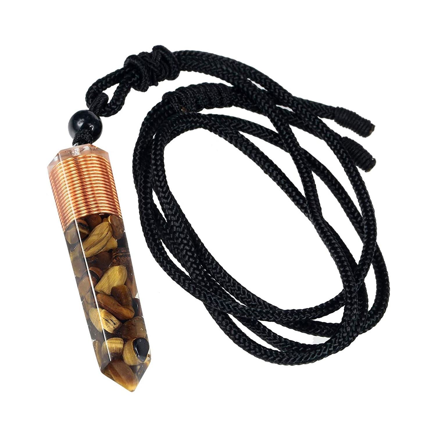 Tiger Eye Orgonite Necklaces are excellent for meditation and spiritual awareness. Coating the orgone pendant with tiger’s eye quartz enhances the healing properties of the orgonite pendant by amplifying spiritual energies, including crystals and gemstones, to assist in drawing off negative energies from your chakras.